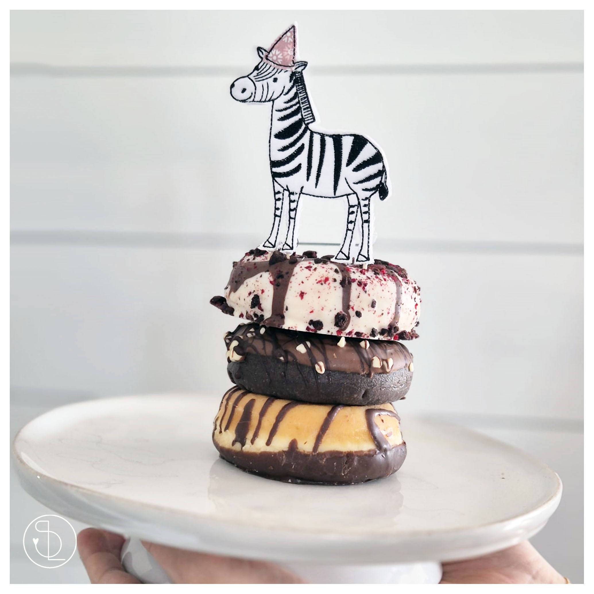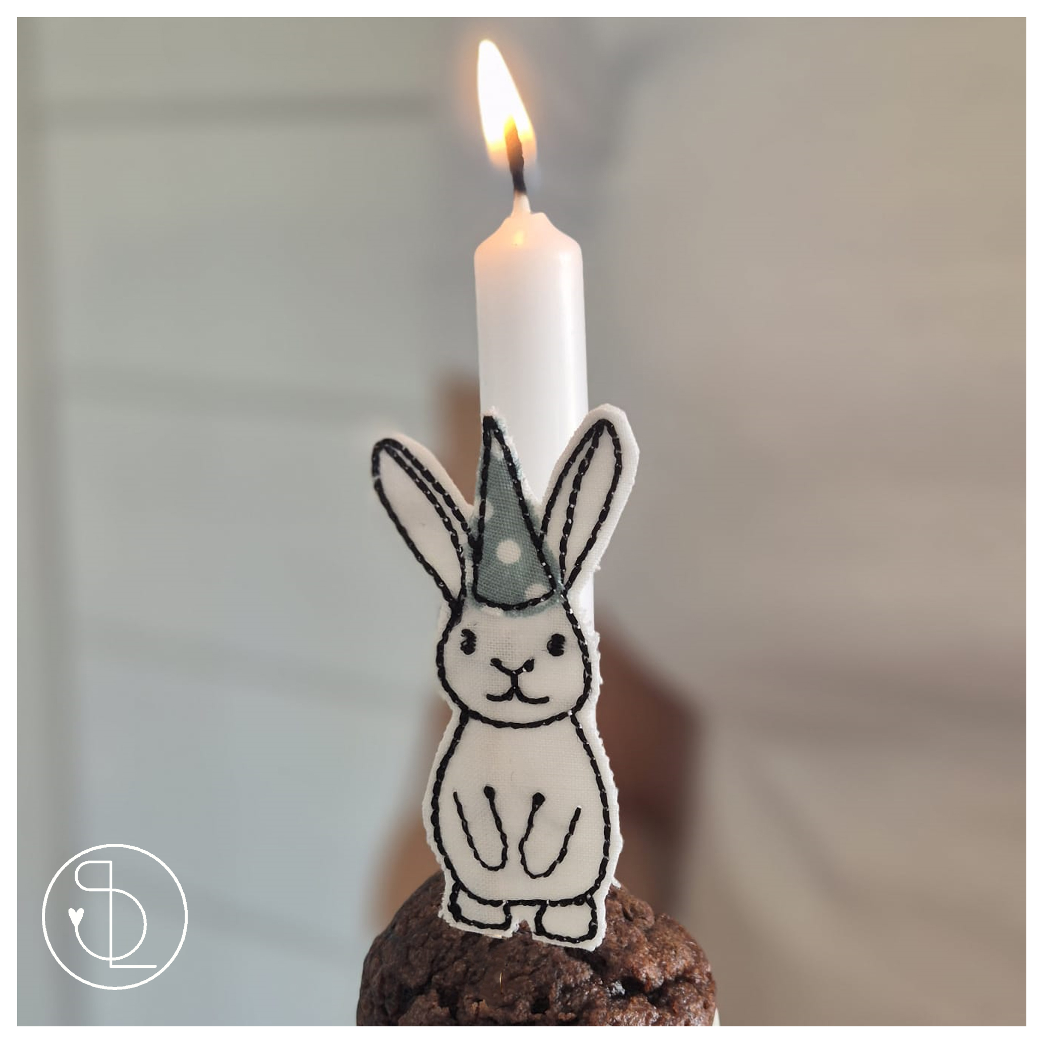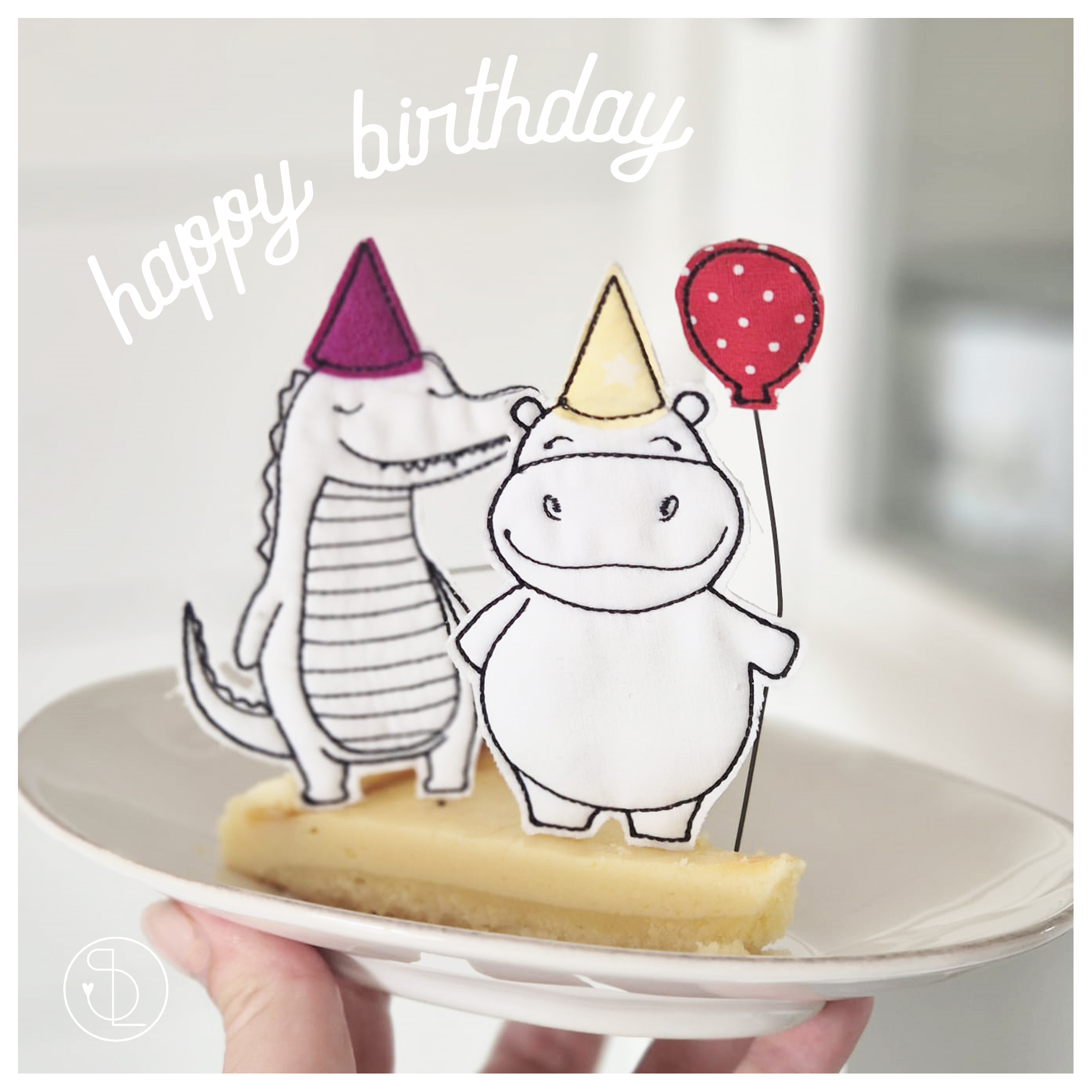Die Geburtstagtiere werden als “Doodledatei” mit appliziertem Partyhütchen im 10×10 Rahmen gestickt. An der Unterseite befindet sich (von hinten sichtbar) eine kleine Lücke, durch die Du ein Holzstäbchen stecken kannst. So passen Krokodil, Hase & Co. perfekt auf den Geburtstagskuchen oder in den Blumentopf!