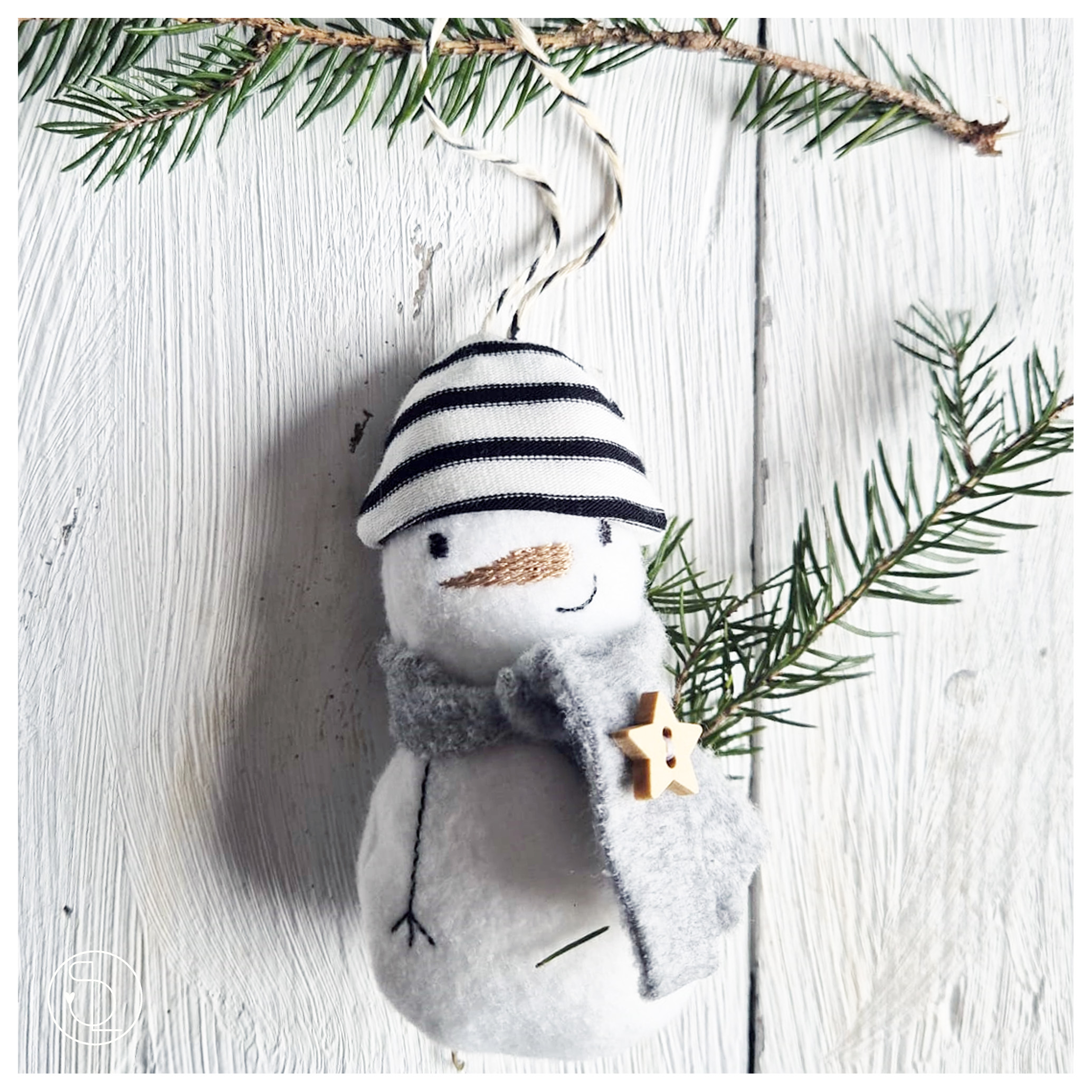 Schneemann Snobert und seine Mütze werden im 10×10 Rahmen gestickt – am besten aus dünnem Filz oder Fleece.