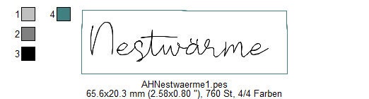 Das Schild “Nestwärme” wird ebenfalls im 10×10 Rahmen gestickt.