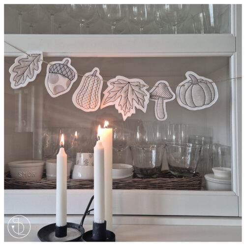 Die Girlande wird ITH gestickt. Auf der Rückseite befindet sich ein Tunnel, durch den Du ein Band ziehen kannst.