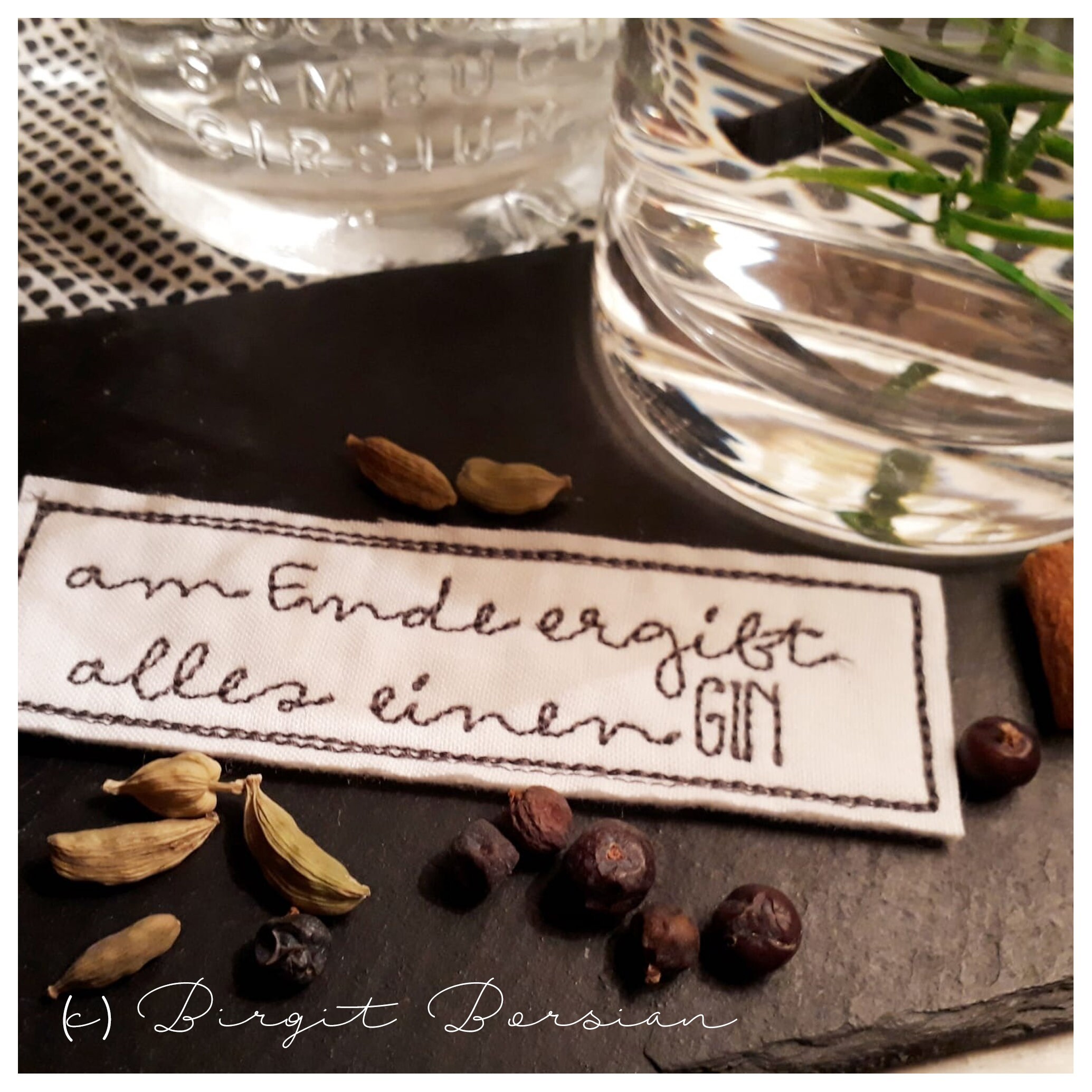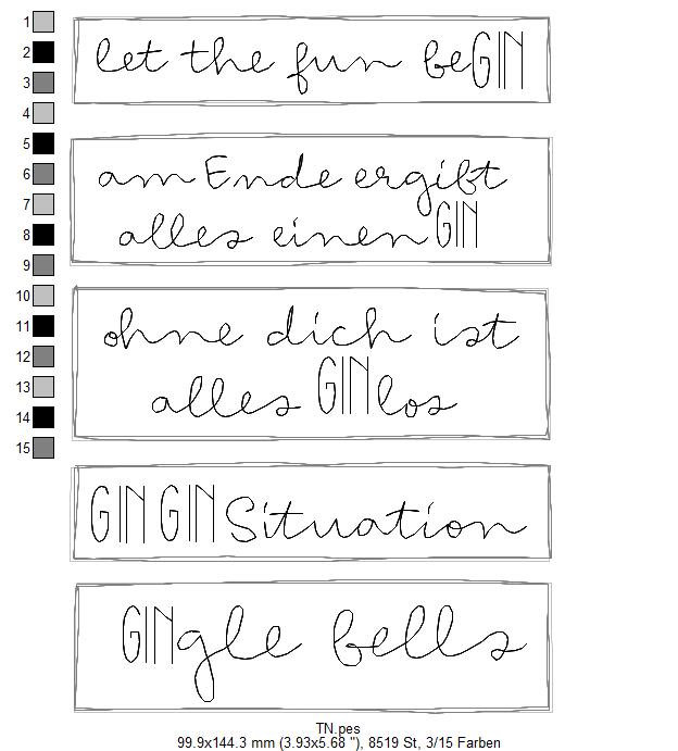 Die GIN Schriften kannst Du als Anhänger sowie als separaten Schriftzug, z.B. auf einen Untersetzer, sticken.