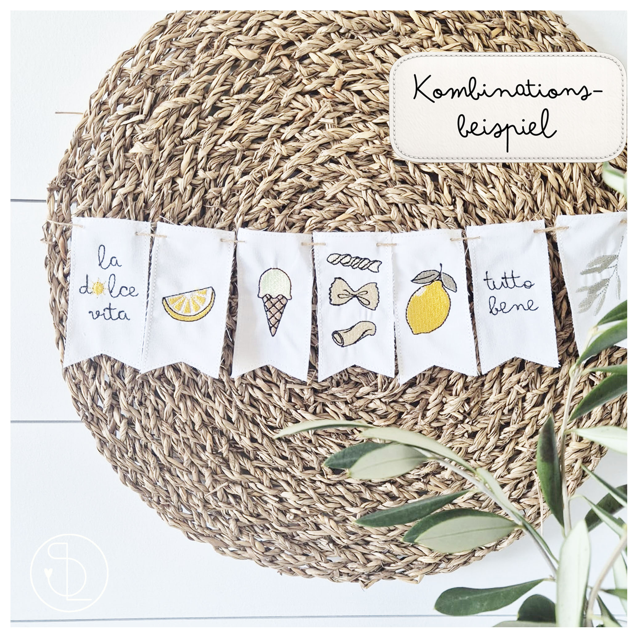 | Miniwimpel | Eis, la dolce vita, Olivenzweig, Pasta, tutto bene, Zitrone, Zitronenscheibe |