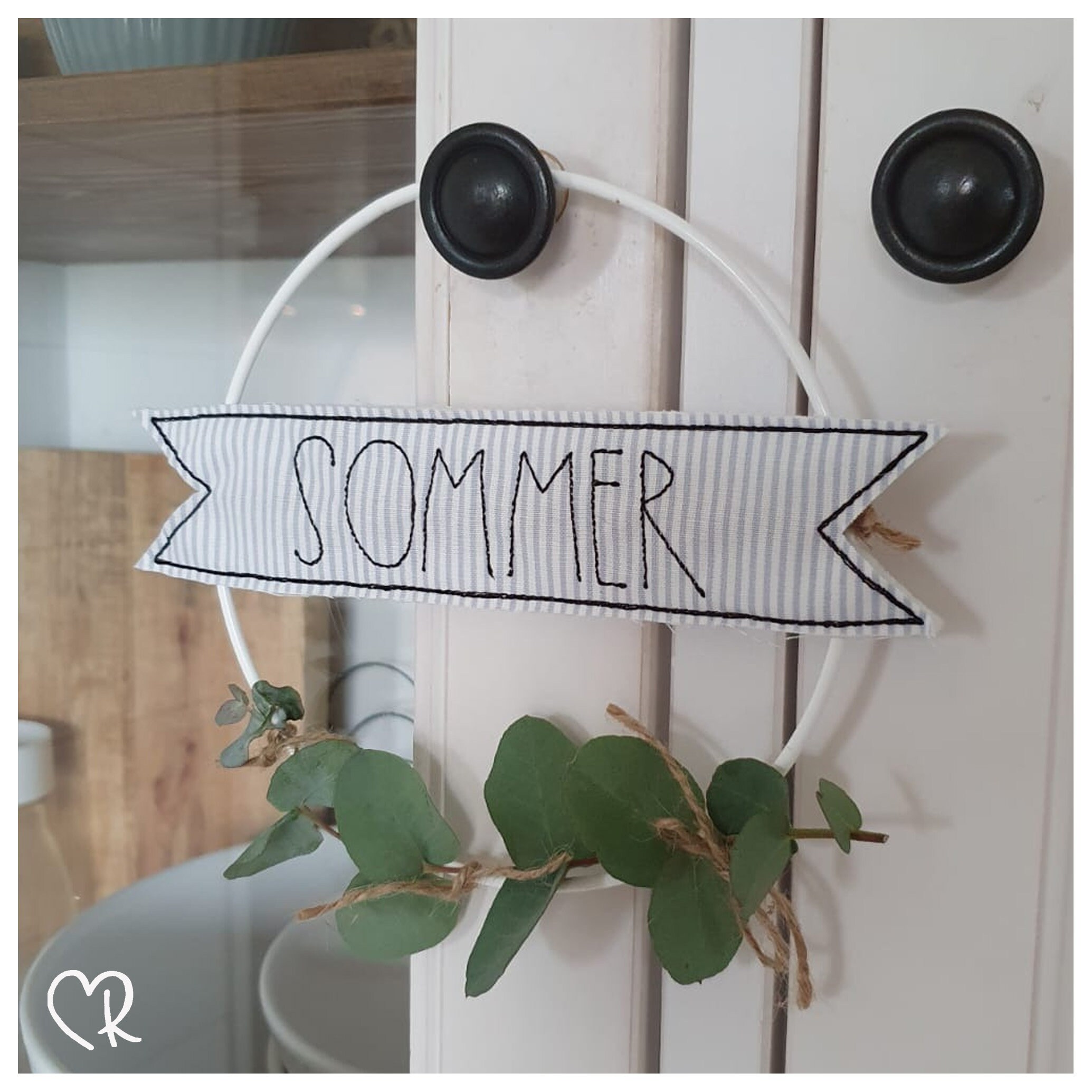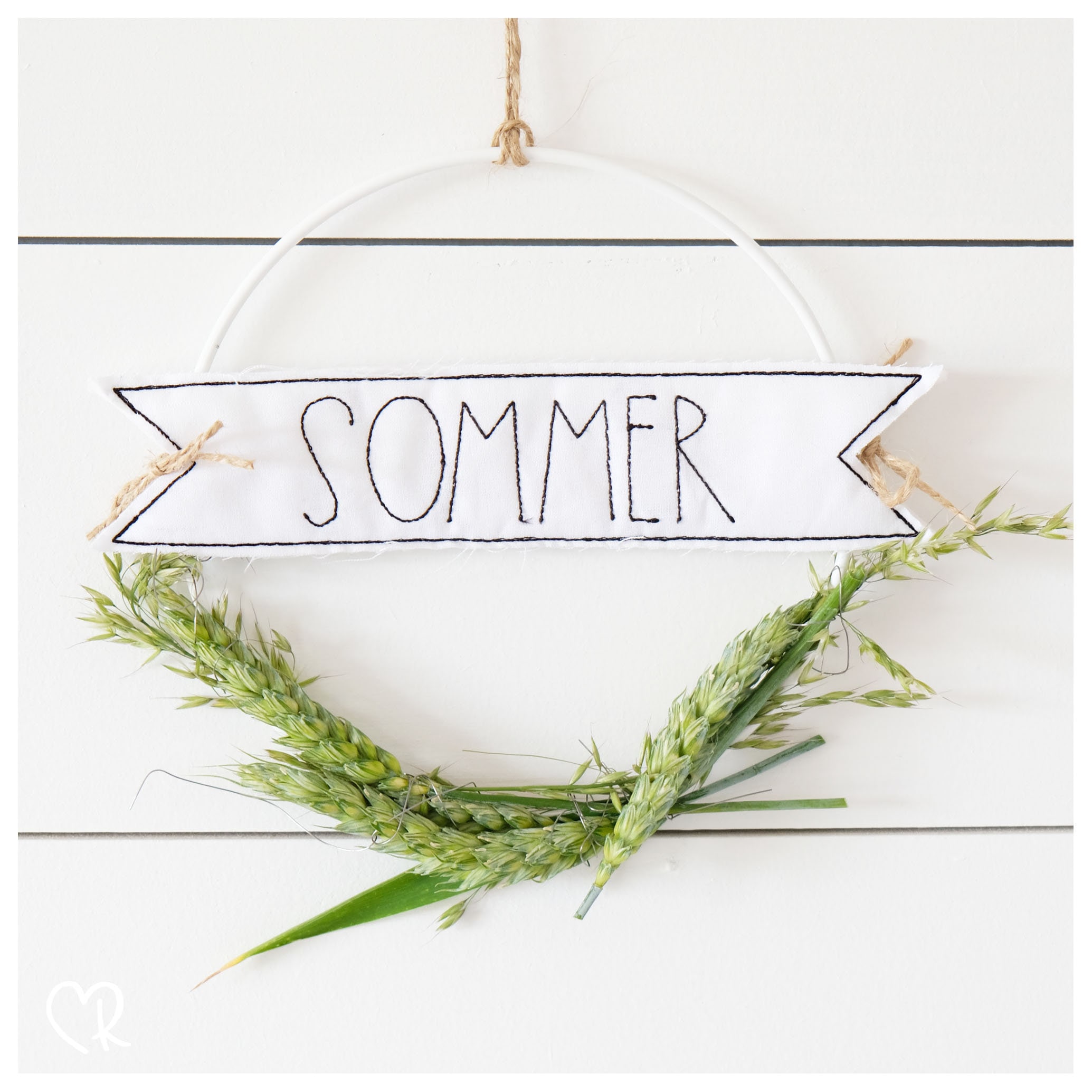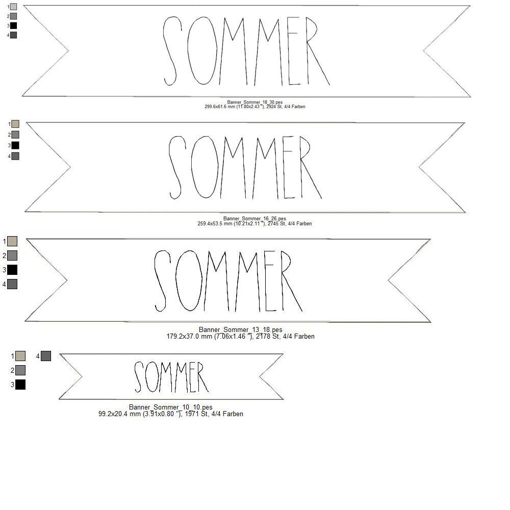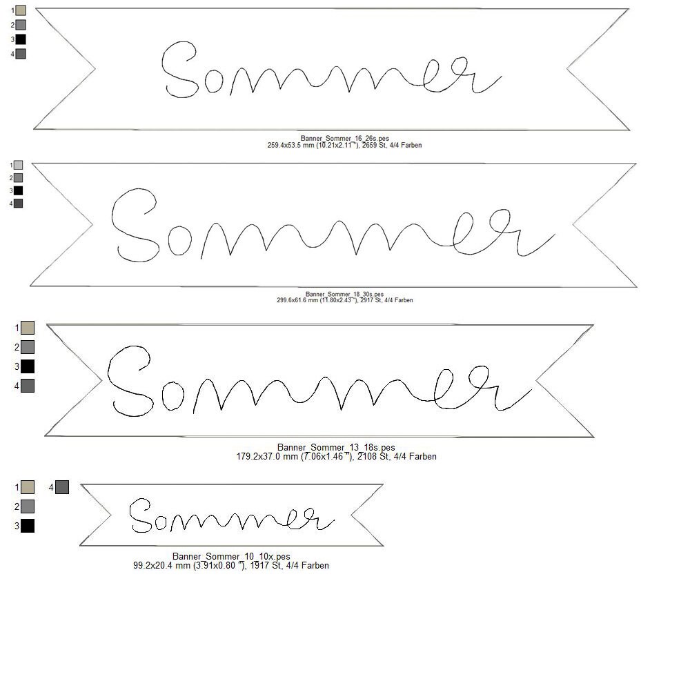 Die Banner werden komplett ITH gestickt und haben auf der Rückseite eine Öffnung, durch die Du ein Band ziehen kannst. Du erhältst alle Größen (10×10, 13×18, 16×26 und 18×30) jeweils in Druck- und Schreibschrift.
