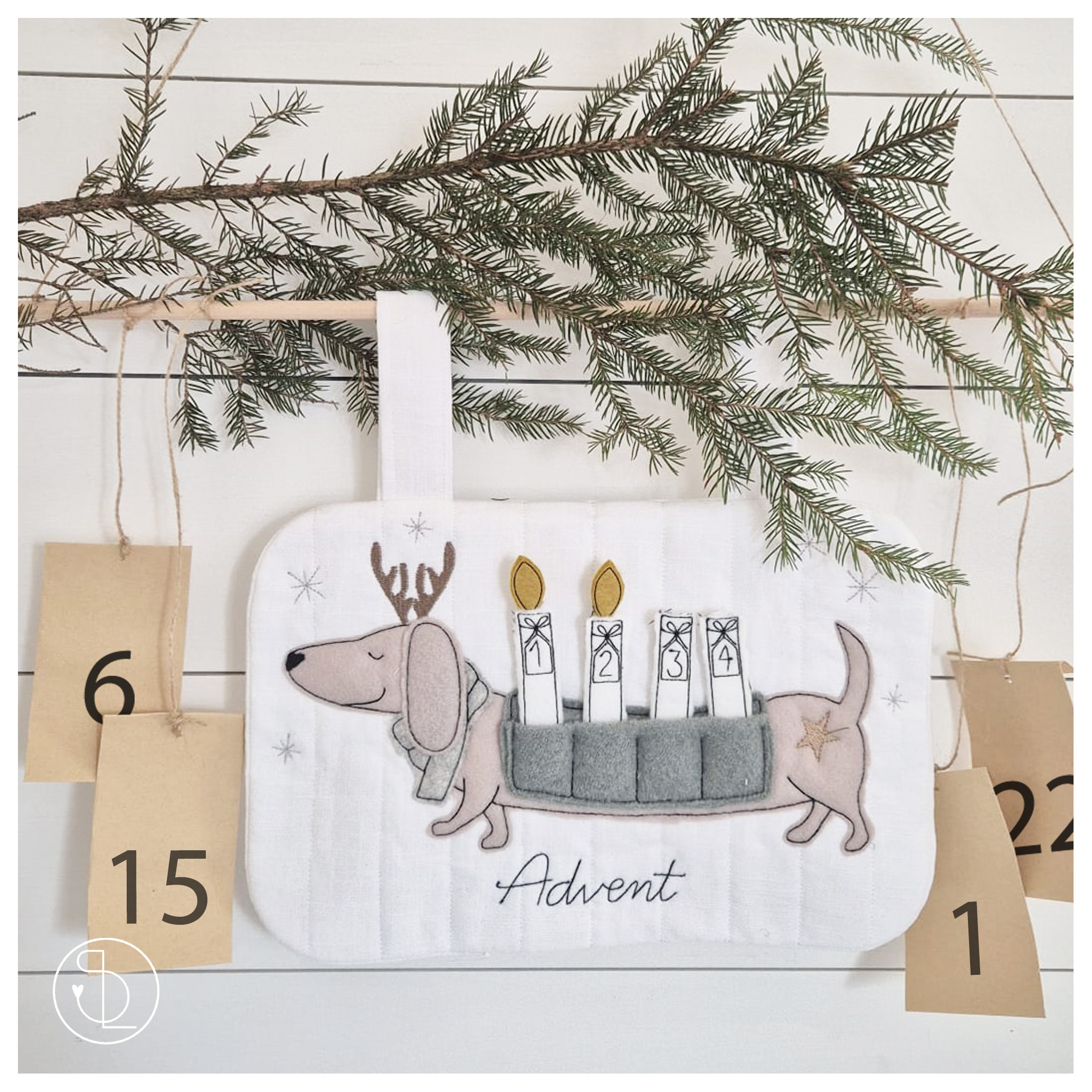 Die Kerzen – mit oder ohne Flamme – werden separat gestickt und dann an jedem Adventssonntag in Walters Täschchen gesteckt.